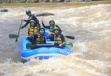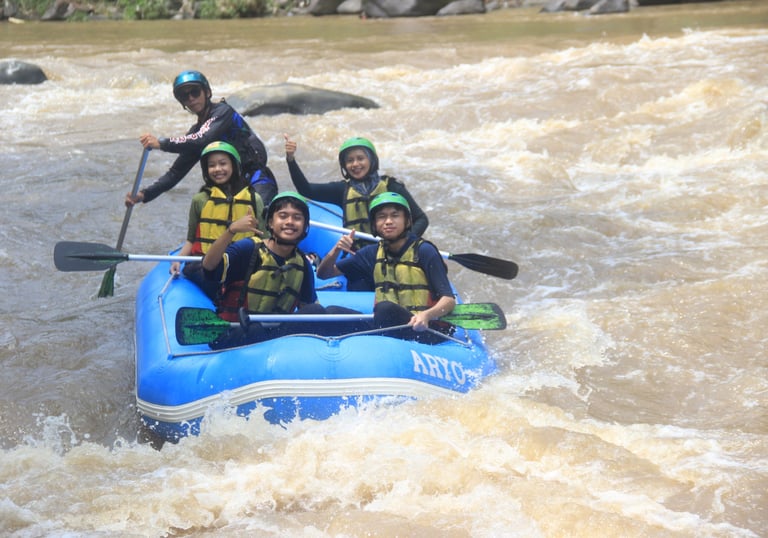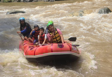 Rasakan adrenaline di arung jeram yang menantang dan menyenangkan bersama teman-teman.